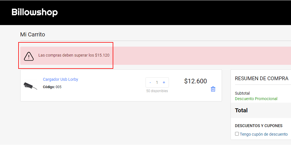 Sin dudas, el poner un tope mínimo de compra ayuda enormemente a aumentar los ingresos y hacer el negocio más rentable, ya que se incrementa el ticket promedio de venta. Ahora, esta posibilidad de añadir esta regla a tu tienda electrónica es un hecho con tu Tienda Billowshop.