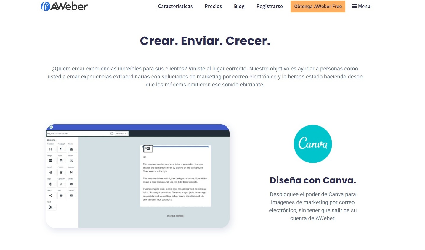 Con Aweber, podés crear correos electrónicos profesionales de forma simple, incluso si estás empezando. Su editor intuitivo y la integración con Canva facilitan el diseño de campañas atractivas sin necesidad de conocimientos técnicos, permitiéndote mantener una comunicación constante, coherente con tu marca y enfocada en resultados.