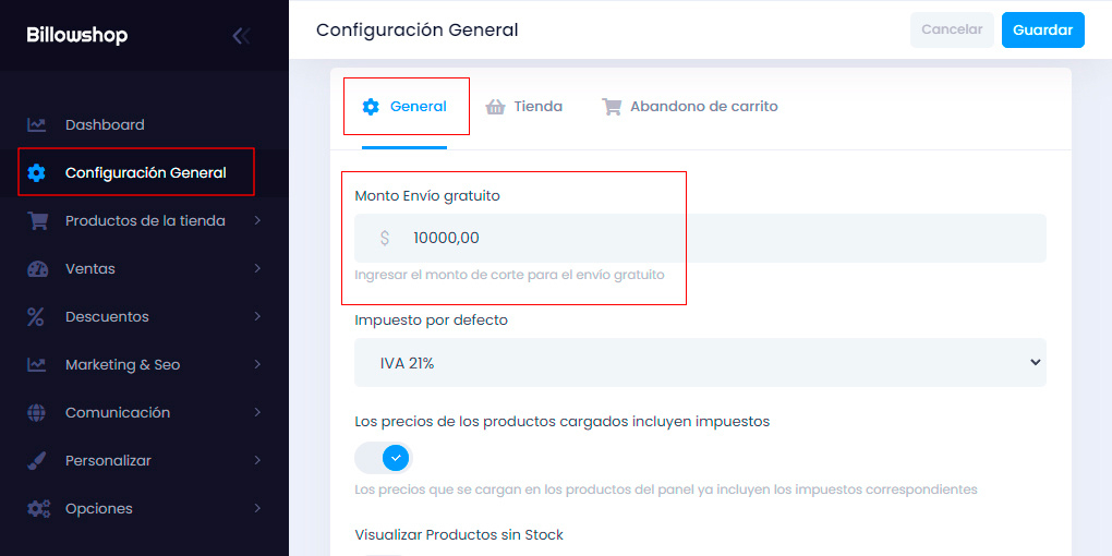 - Configurar reglas de envíos sin cargo para compras superiores a X monto