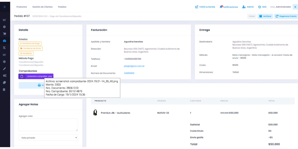Ahora, tus clientes pueden cargar fácilmente un comprobante de transferencia o depósito a través de un botón en el email de confirmación de compra. Descubre cómo esta característica facilita la gestión de pagos para ti y tus clientes.